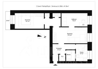 Продается трёхкомнатная квартира 61,8 кв. м.