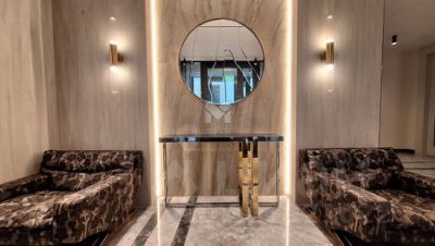 - А на первом этаже внутреннего корпуса находится зона лобби и ресепшн