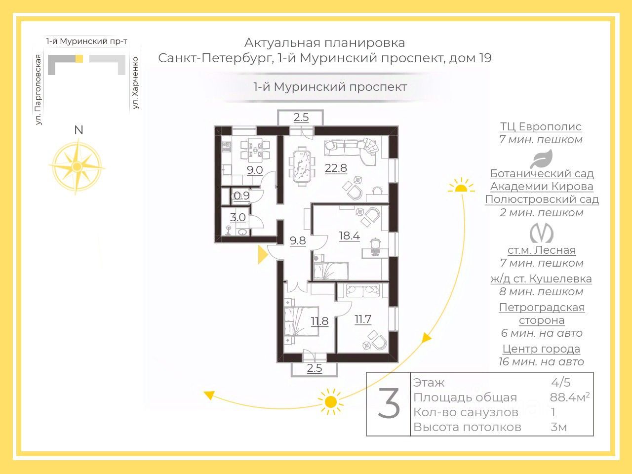 7 минут до станции метро Лесная. 8 минут до Ж/Д станция Кушелевка.