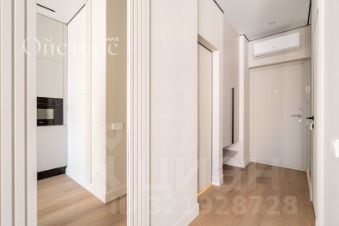Вся мебель в квартире сделана на заказ. Полы выполнены из износостойкого SPC-ламината с фактурой под дерево; стены окрашены качественной моющейся краской. На кухне и в комнате сделана закарнизная подсветка, а также установлены настенные бра с регулировкой цветовой температуры. Все помещения спроектированы в нейтральных пастельных тонах, что создает ощущение единого гармоничного пространства.
