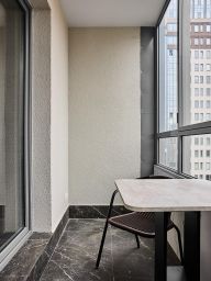 Выполнен качественный ремонт, стены выровнены и окрашены. В спальне установлена шумоизоляция на потолке. Натяжной потолок во всех помещениях, кроме кухни, оставили для будущего собственника для установки кухонного гарнитура. Сантехника в с/у высокого сегмента, установлены фильтры воды.