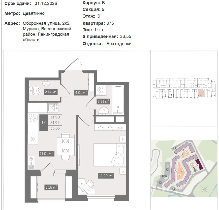 1.5 км. - М. Девяткина и электричка идущая до центра города и курортные зоны отдыха.