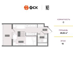 Прямая продажа от застройщика — только в этом месяце. Студия в клубном доме N8 на 10-м этаже. Общая площадь 26,62. Без отделки.