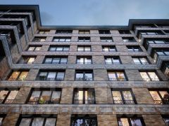 В облике дома отражены характерные черты петербургской исторической архитектуры: фактурная кирпичная кладка песочных оттенков, декоративные вставки и разностилевое остекление.