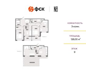 Прямая продажа от застройщика — только в этом месяце. 3-к квартира в клубном доме N8 на 9-м этаже. Общая площадь 125,77. Без отделки.