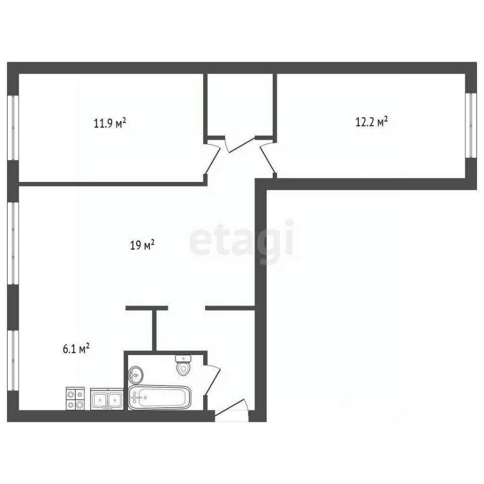 Площадь комнат 19/ 11,9/ 12,2 кв.м