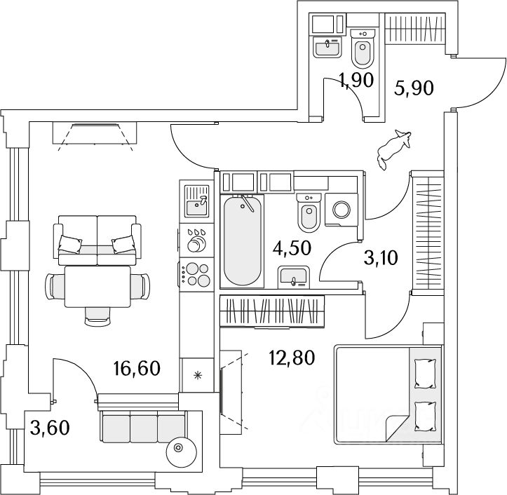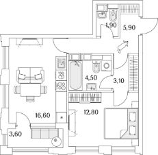 Продаётся 1-комнатная квартира в строящемся доме (Корпус 4), срок сдачи: IV-кв. 2024, общей площадью 46.6 кв.м., на 5 этаже. Новый жилой комплекс "Тайм Сквер" от застройщика "РосСтройИнвест". Расположен по адресу: г. Санкт-Петербург, ул Глухарская.