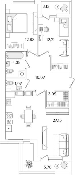 Продаётся 2-комнатная квартира в сданном доме (Лайнеръ), срок сдачи: III-кв. 2025, общей площадью 76.2 кв.м., на 13 этаже. Новый жилой комплекс "Лайнеръ" от застройщика "Холдинг "РСТИ"" расположен по адресу: Россия, Санкт-Петербург, Октябрьская набережная
