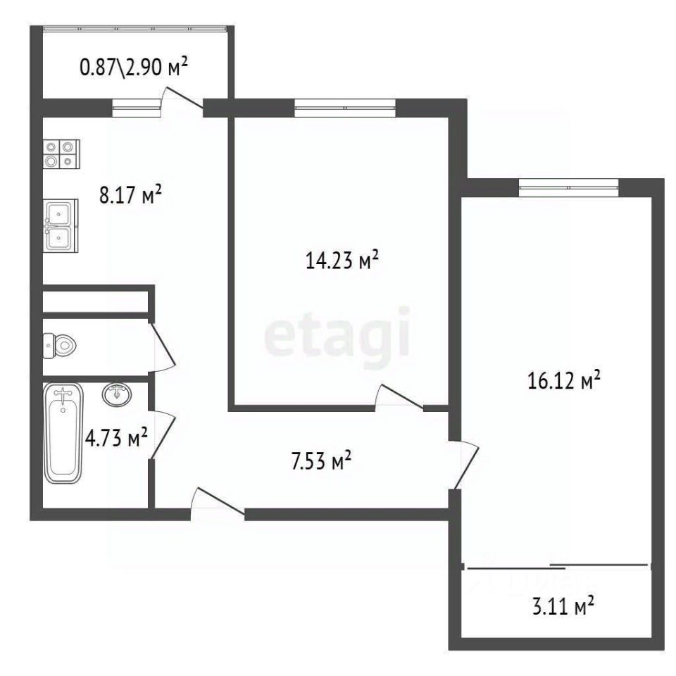 Общая площадь 53,7 кв.м.