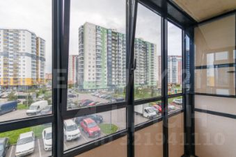 Студия располагается на 3-ем этаже 16-ти этажного дома. В доме два скоростных лифта: грузовой и пассажирский. Чистый, просторный подъезд. Дом в приятных тонах.