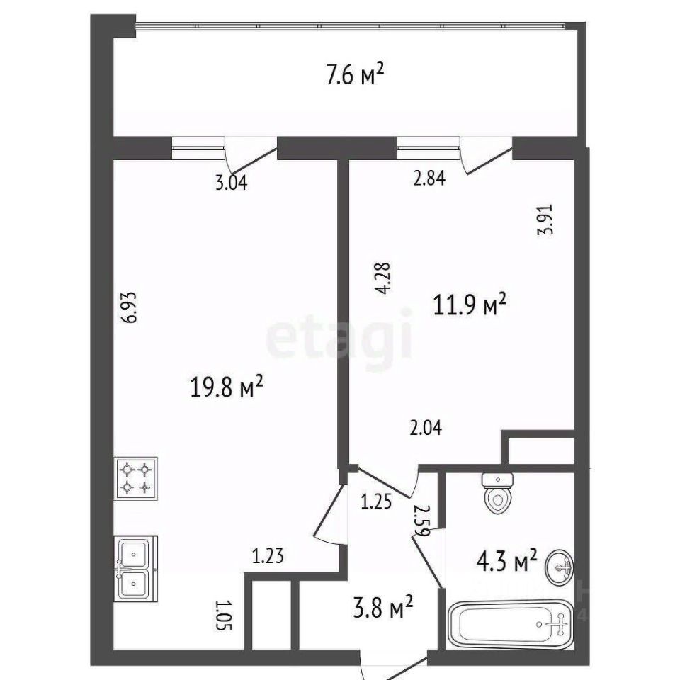 • Современный совмещённый санузел и застеклённая лоджия, которую можно использовать круглый год.