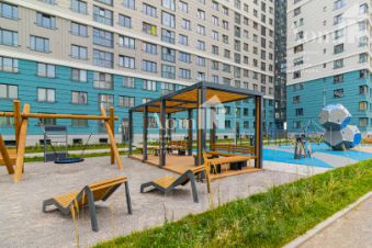 Во дворе установлены детские площадки, спортивные тренажеры и предусмотрены открытые парковочные места. Придомовая территория благоустроена зонами отдыха, деревьями и кустарниками.