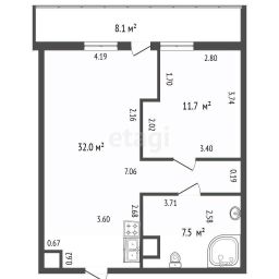 • Продуманная планировка: Просторная кухня-гостиная 32 кв. м — идеальное место для семейных встреч и дружеских вечеринок, отдельная комната 12 кв. м для уединения и комфортный санузел 7,5 кв. м.