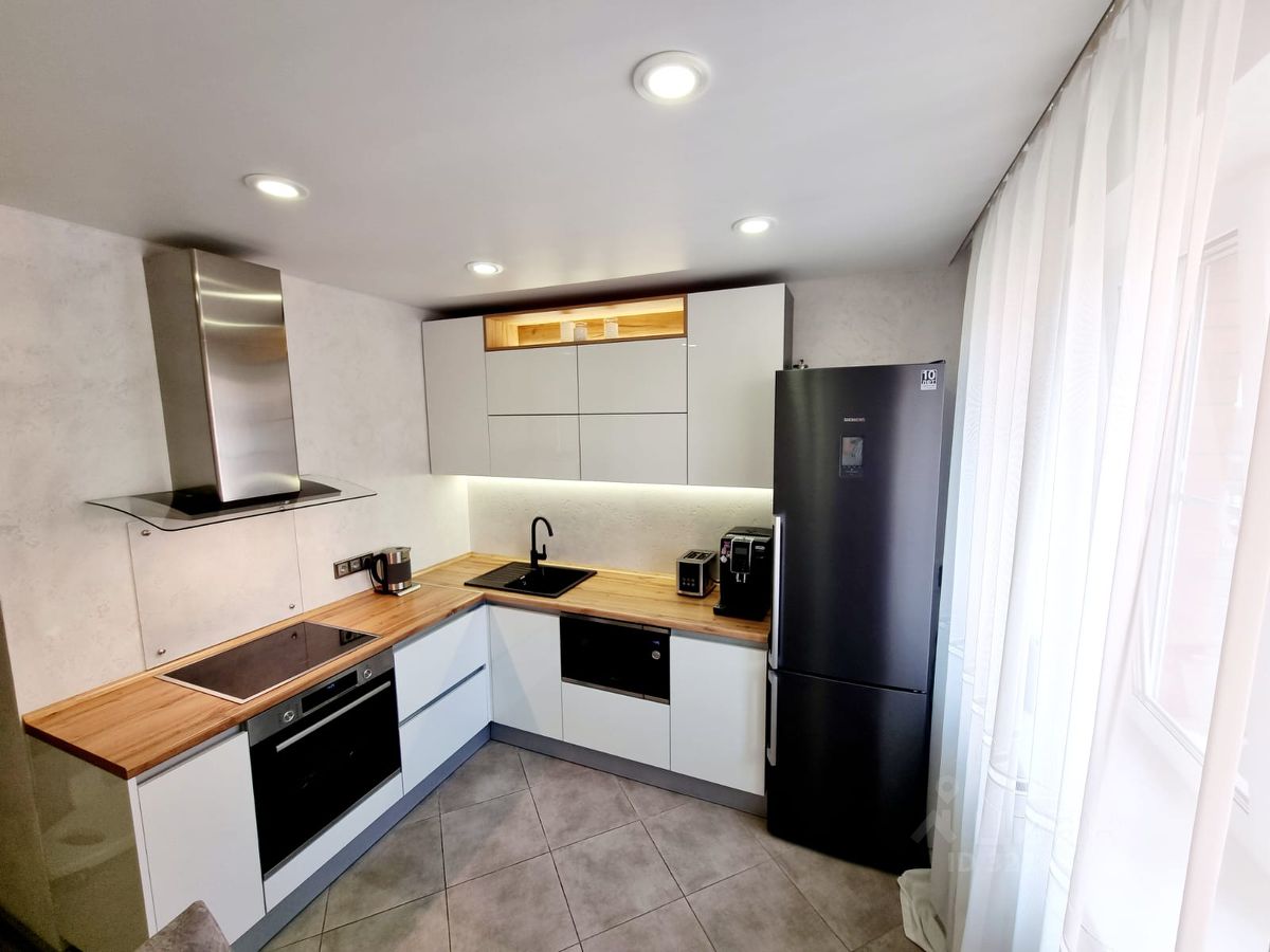 Встроенная кухня с варочной панелью Воsсh и вытяжкой шведского производства (покупалась в IКЕА) остается в подарок. Кухня была изготовлена под заказ, фасады шкафов выполнены из надежного материала акрила. Вся фурнитура иностранного производства, в отличном состоянии. Рабочая зона и ниша для хранения оснащены подсветкой.