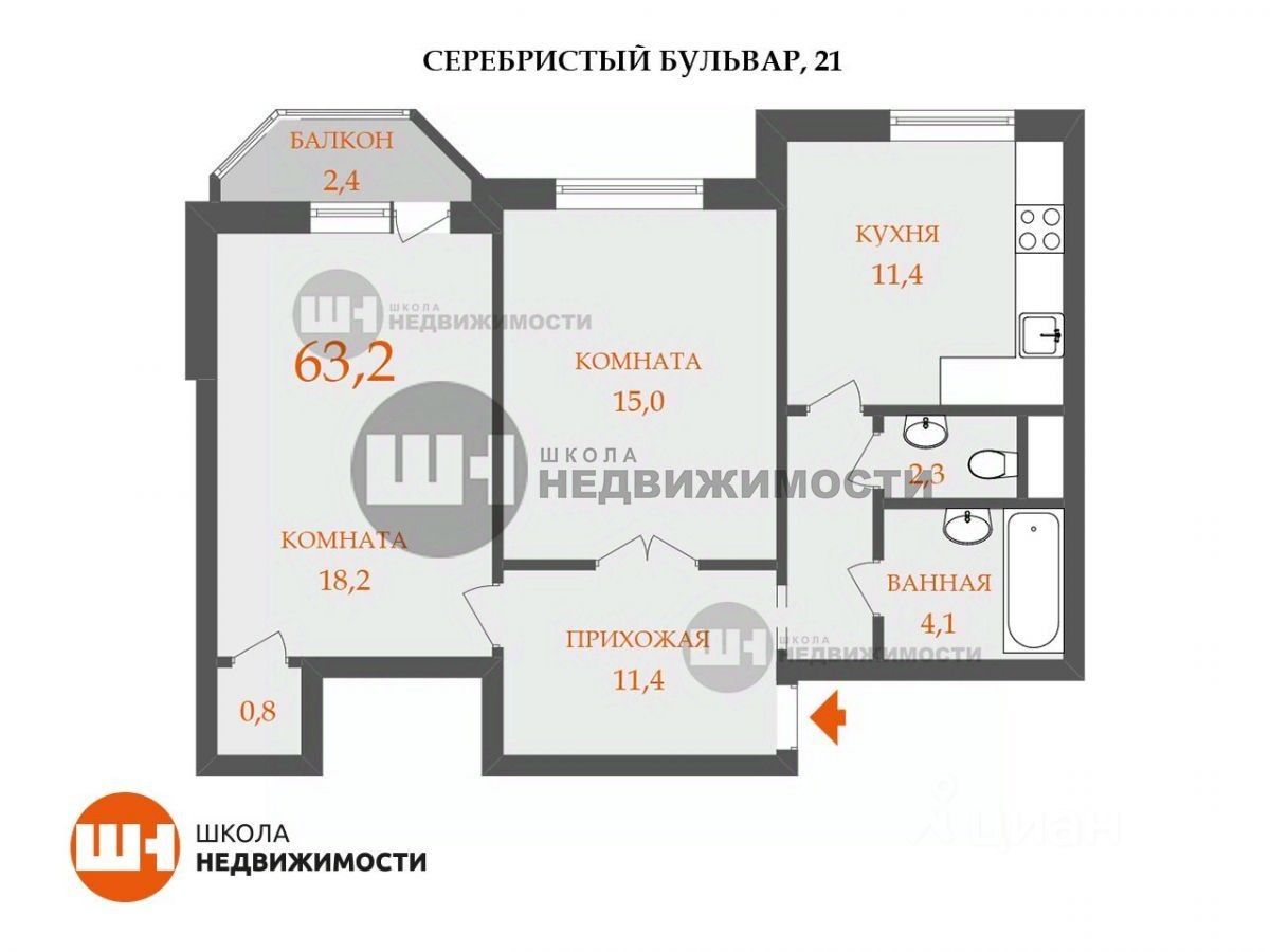 О квартире: Общая площадь: 63.2 м² Жилая площадь: 33.2 м² Просторная кухня-гостиная: 11 м² с качественным кухонным гарнитуром, техникой и гостевым диваном2 изолированные комнаты: - Спальня: гармоничный интерьер, вся мебель остаётся. - Гостиная: идеальное место для отдыха - с балконом и панорамным видом на бульвар Ремонт: Качественный, готовый для комфортного проживания.