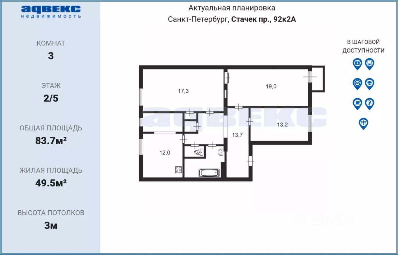 Открытая парковка, вокруг — развитая инфраструктура: школы, детские сады, магазины, остановки, поликлиники — всё в шаговой доступности. До метро Автово — всего 3 минуты пешком!