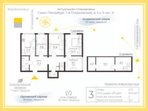 Квартира находится на 3-м этаже 3-этажного монолитного дома, построенного в 2008 году.