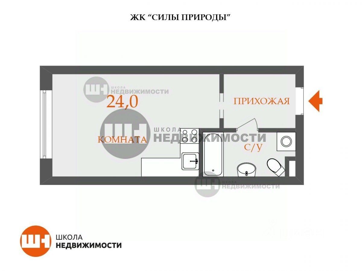 Просторная студия 24.6 м². Светлая квартира имеет полноценный кухонный гарнитур
