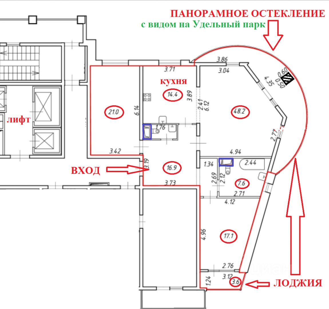 Арт. 96575038 В продаже уникальная трехкомнатная квартира С САМОЙ УДАЧНОЙ ПЛАНИРОВКОЙ в новом ЖК "Светлана" С ПАНОРАМОЙ НА УДЕЛЬНЫЙ ПАРК (возможно панорамное остекление)
