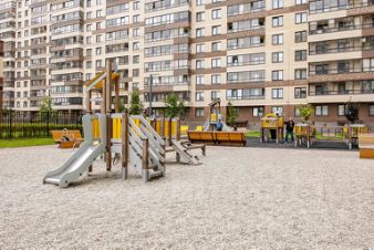 Жилой комплекс расположен в районе с развитой инфраструктурой: магазины Дикси, Магнит, аптеки, кафе и фитнес-центры в шаговой доступности. Во дворе находятся детский сад и начальная школа, что удобно для семей с детьми. Транспортная доступность на высоком уровне — рядом остановки общественного транспорта с удобным выездом на КАД и быстрым доступом к метро.