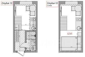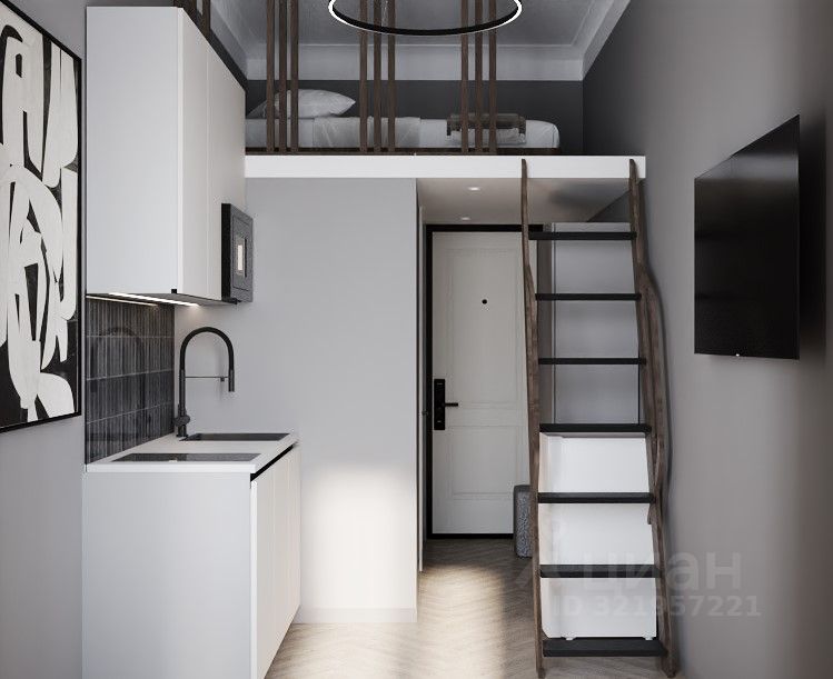 Студия имеет 2 уровня - дополнительное спальное место наверху позволяет максимально использовать полезную площадь. Удобство для жизни и дополнительный доход для сдачи в аренду.