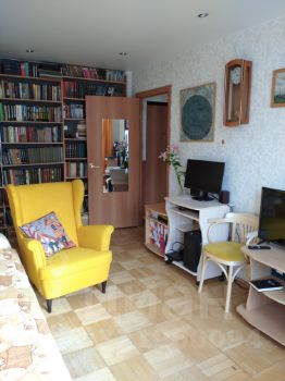 Светлая чистая теплая однокомнатная квартира 30,9 кв. м. на комфортном третьем этаже. Окна в тихий зеленый двор. Комната 15,8 кв м, прямоугольная. Кухня 6,3 кв.м, вместительная кладовая, раздельный санузел. Установлены стеклопакеты. Потолки натяжные. В комнате и коридоре паркет, в кухне линолеум, в ванной и туалете плитка. Установлены счетчики. Во второй кладовой подключения для стиральной машины.