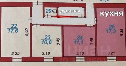 Документально- это четыре комнаты, в 12 комнатном блоке (треть этажа Ваша), с прекрасными соседями.