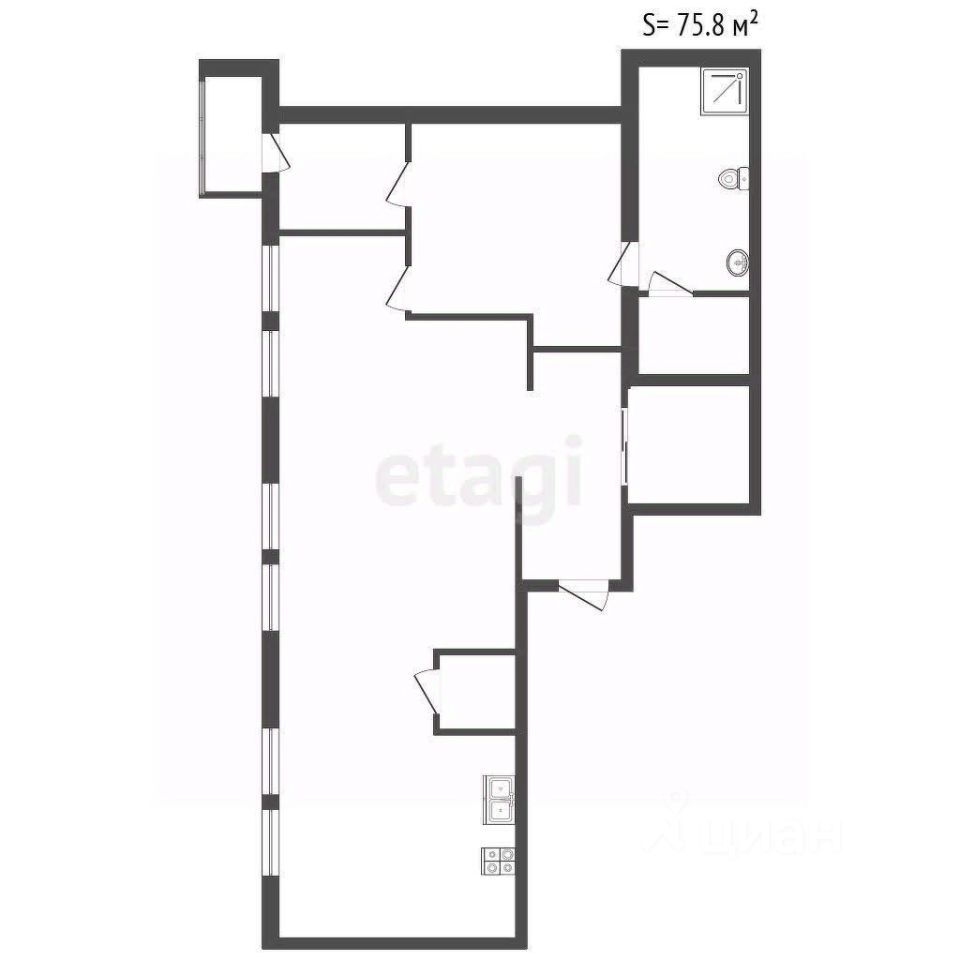 Квартира свободной планировки ( фактически 2х комнатная площадь 75,8 м2 ).