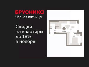 1-комн. квартира с предчистовой отделкой в ЖК "Брусника в Новоселье" на 4 этаже. Общая площадь: 35.21 кв.м., жилая: 11.9 кв.м., площадь просторной кухни-столовой: 15.8 кв.м. Все окна выходят на одну сторону. В квартире один совмещенный санузел. Высота потолков 2.7 м.