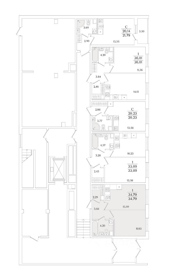 Квартира находится в 9 этажном доме, в Очередь 2, Корпус 2 на 1 этаже. Общая площадь квартиры 34,79 кв.м.