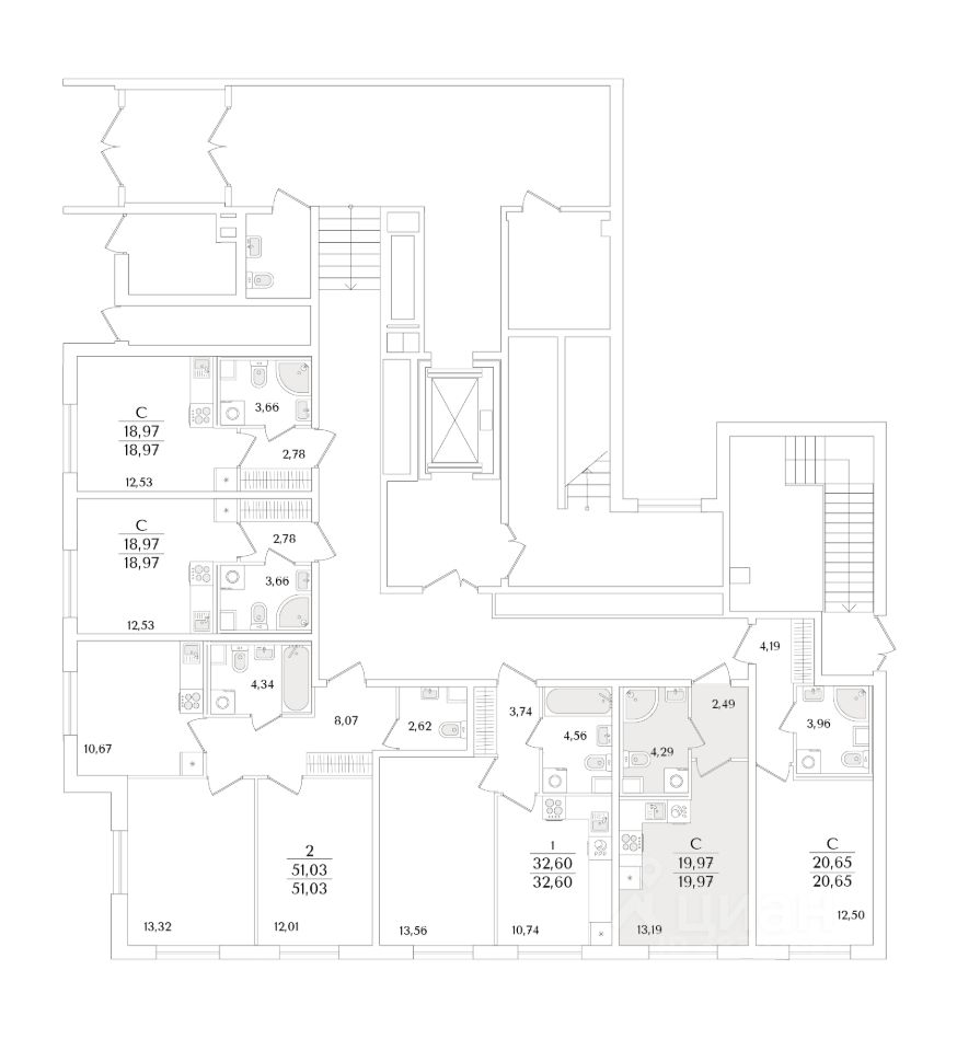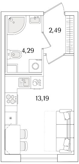 Квартира находится в 9 этажном доме, в Очередь 2, Корпус 2 на 1 этаже. Общая площадь квартиры 19,97 кв.м.