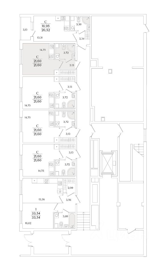 Квартира находится в 9 этажном доме, в Очередь 2, Корпус 2 на 1 этаже. Общая площадь квартиры 21,60 кв.м.