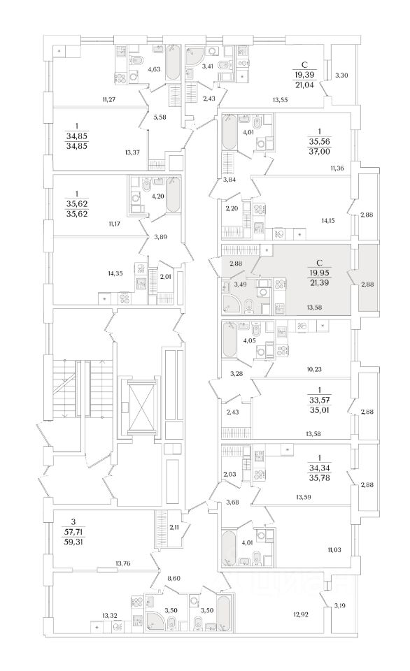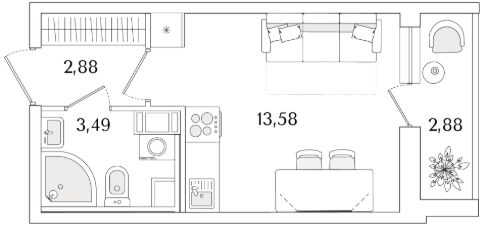 Квартира находится в 9 этажном доме, в Очередь 2, Корпус 2 на 2 этаже. Общая площадь квартиры 21,39 кв.м.