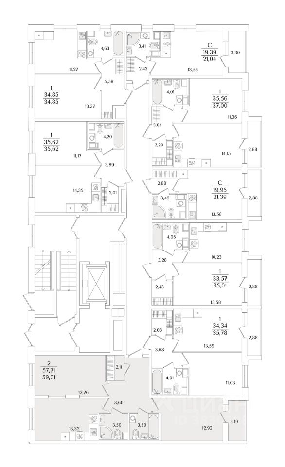 Квартира находится в 9 этажном доме, в Очередь 2, Корпус 2 на 2 этаже. Общая площадь квартиры 59,31 кв.м.