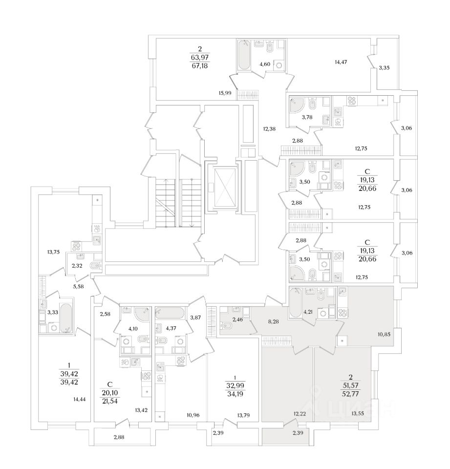 Квартира находится в 9 этажном доме, в Очередь 2, Корпус 2 на 2 этаже. Общая площадь квартиры 52,77 кв.м.