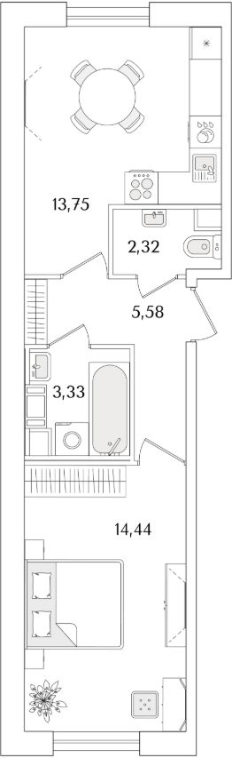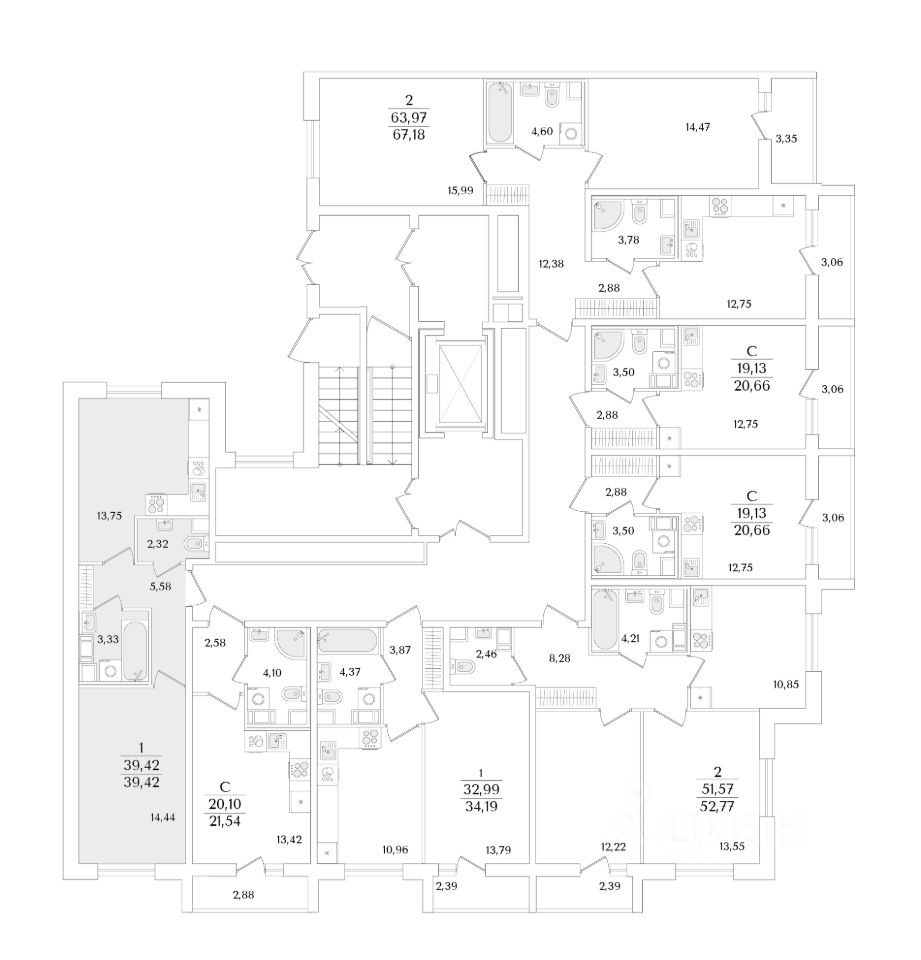Квартира находится в 9 этажном доме, в Очередь 2, Корпус 2 на 2 этаже. Общая площадь квартиры 39,42 кв.м.