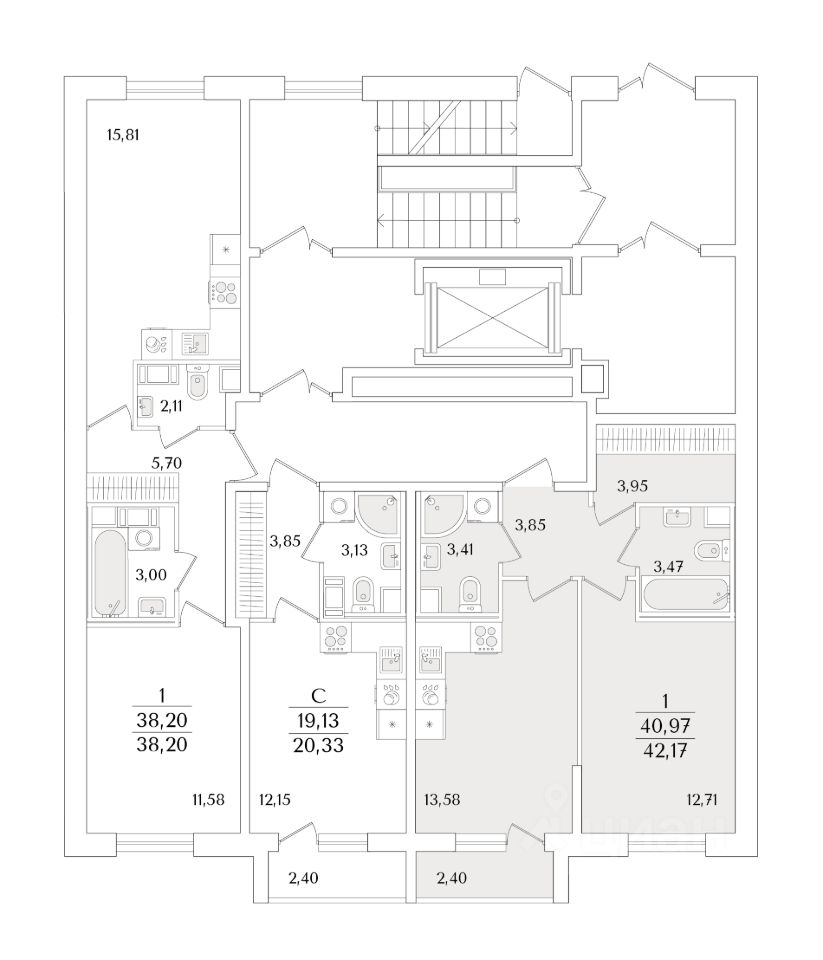 Квартира находится в 9 этажном доме, в Очередь 2, Корпус 2 на 2 этаже. Общая площадь квартиры 42,17 кв.м.