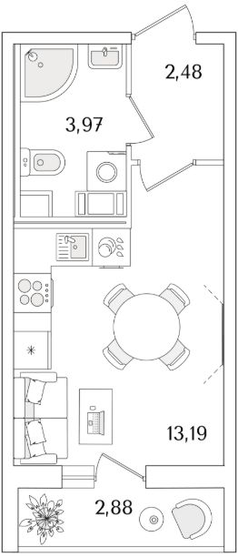 Квартира находится в 9 этажном доме, в Очередь 2, Корпус 2 на 2 этаже. Общая площадь квартиры 21,08 кв.м.