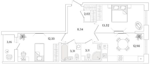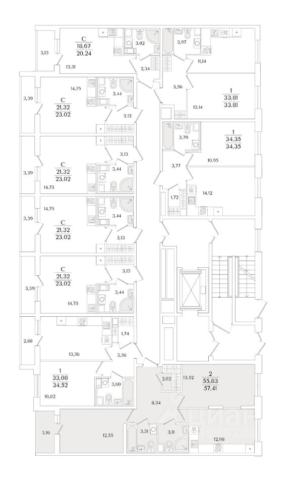 Квартира находится в 9 этажном доме, в Очередь 2, Корпус 2 на 2 этаже. Общая площадь квартиры 57,41 кв.м.