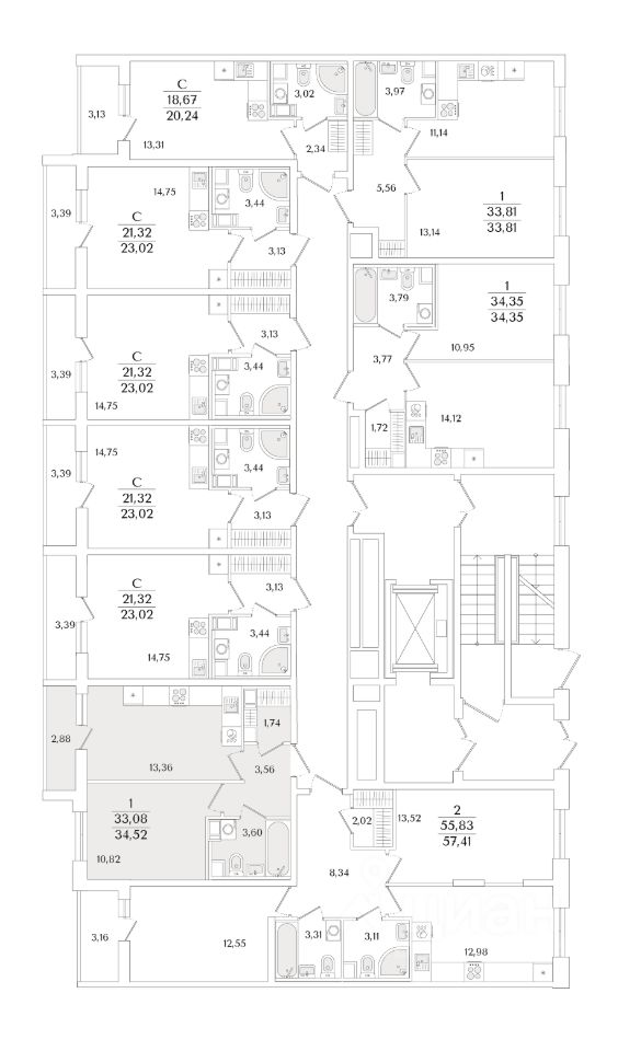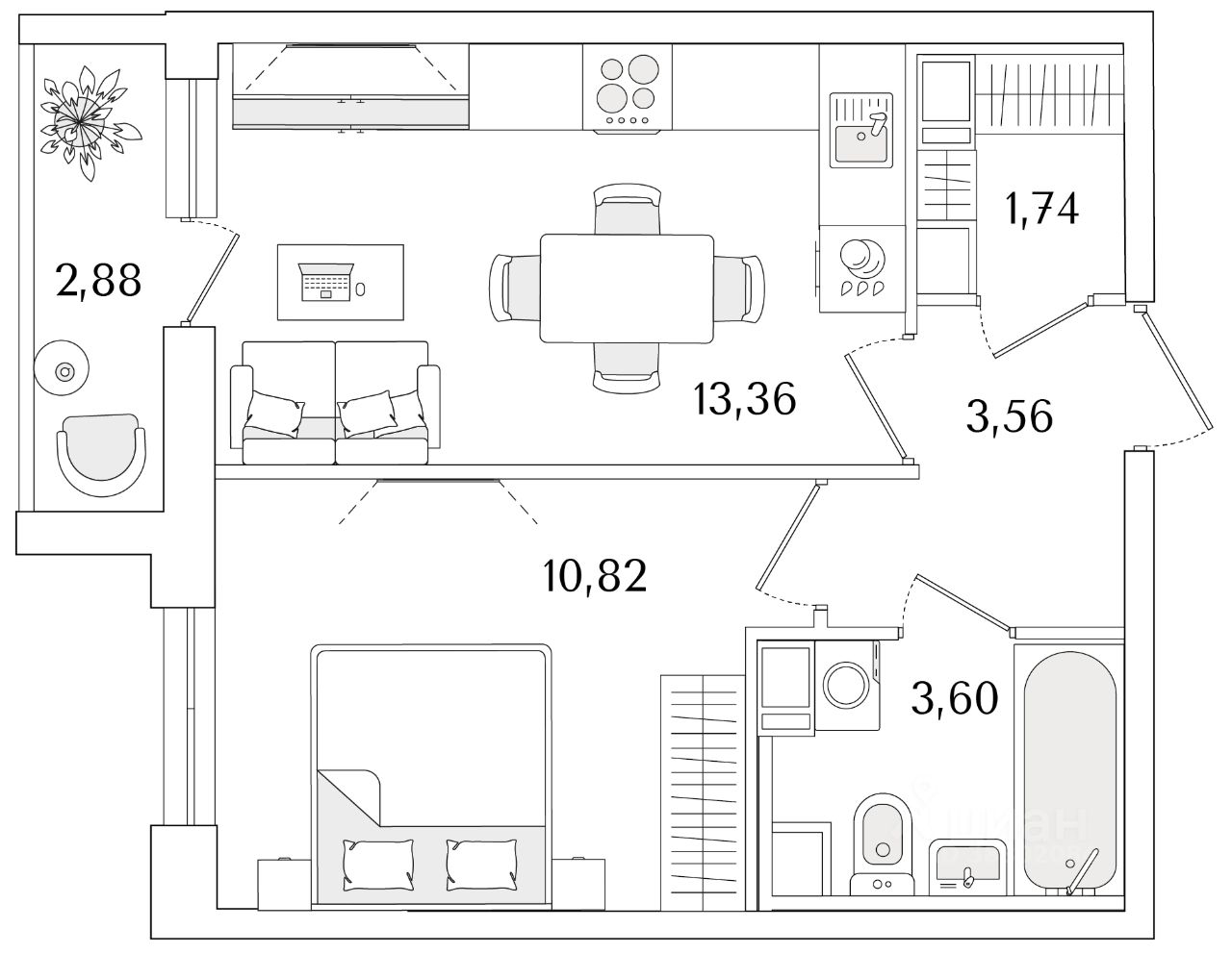 Квартира находится в 9 этажном доме, в Очередь 2, Корпус 2 на 2 этаже. Общая площадь квартиры 34,52 кв.м.