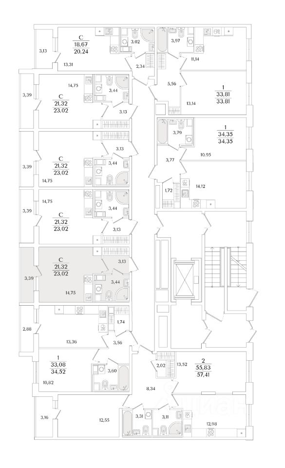 Квартира находится в 9 этажном доме, в Очередь 2, Корпус 2 на 2 этаже. Общая площадь квартиры 23,02 кв.м.