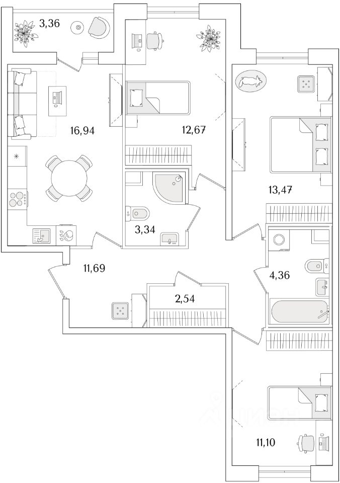 Продаётся 3к.кв. в ЖК Кинопарк от застройщика Холдинг "РСТИ" (Росстройинвест).