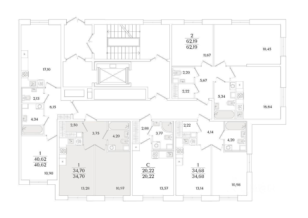 Квартира находится в 9 этажном доме, в Очередь 2, Корпус 2 на 2 этаже. Общая площадь квартиры 34,70 кв.м.