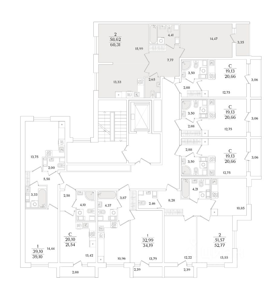 Квартира находится в 9 этажном доме, в Очередь 2, Корпус 2 на 3 этаже. Общая площадь квартиры 60,31 кв.м.