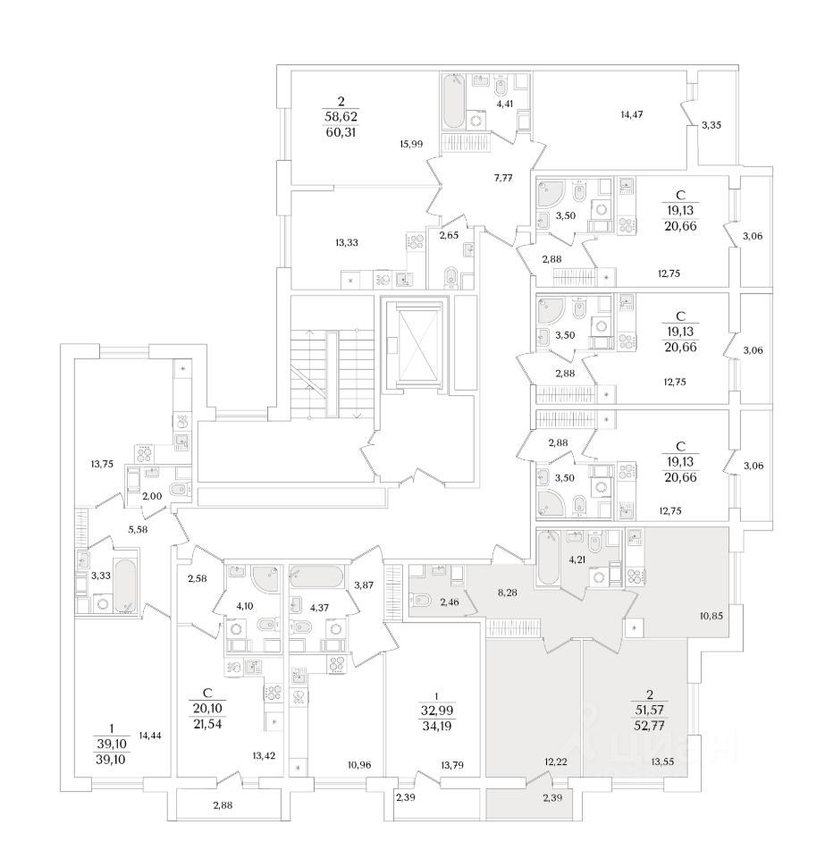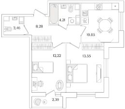 Квартира находится в 9 этажном доме, в Очередь 2, Корпус 2 на 3 этаже. Общая площадь квартиры 52,77 кв.м.