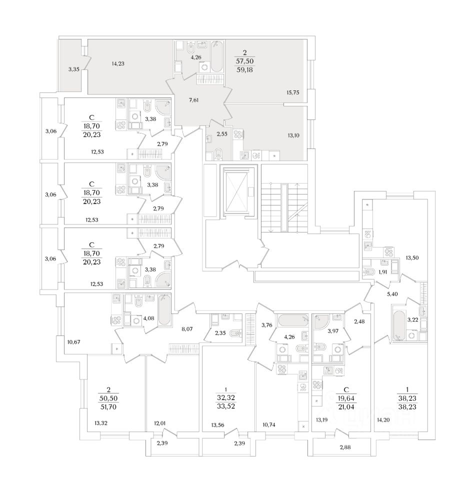 Квартира находится в 9 этажном доме, в Очередь 2, Корпус 2 на 3 этаже. Общая площадь квартиры 59,18 кв.м.