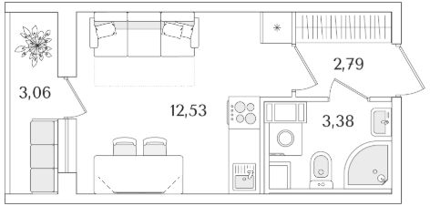 Квартира находится в 9 этажном доме, в Очередь 2, Корпус 2 на 4 этаже. Общая площадь квартиры 20,23 кв.м.