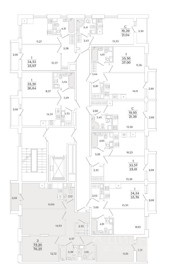 Квартира находится в 9 этажном доме, в Очередь 2, Корпус 2 на 6 этаже. Общая площадь квартиры 78,25 кв.м.