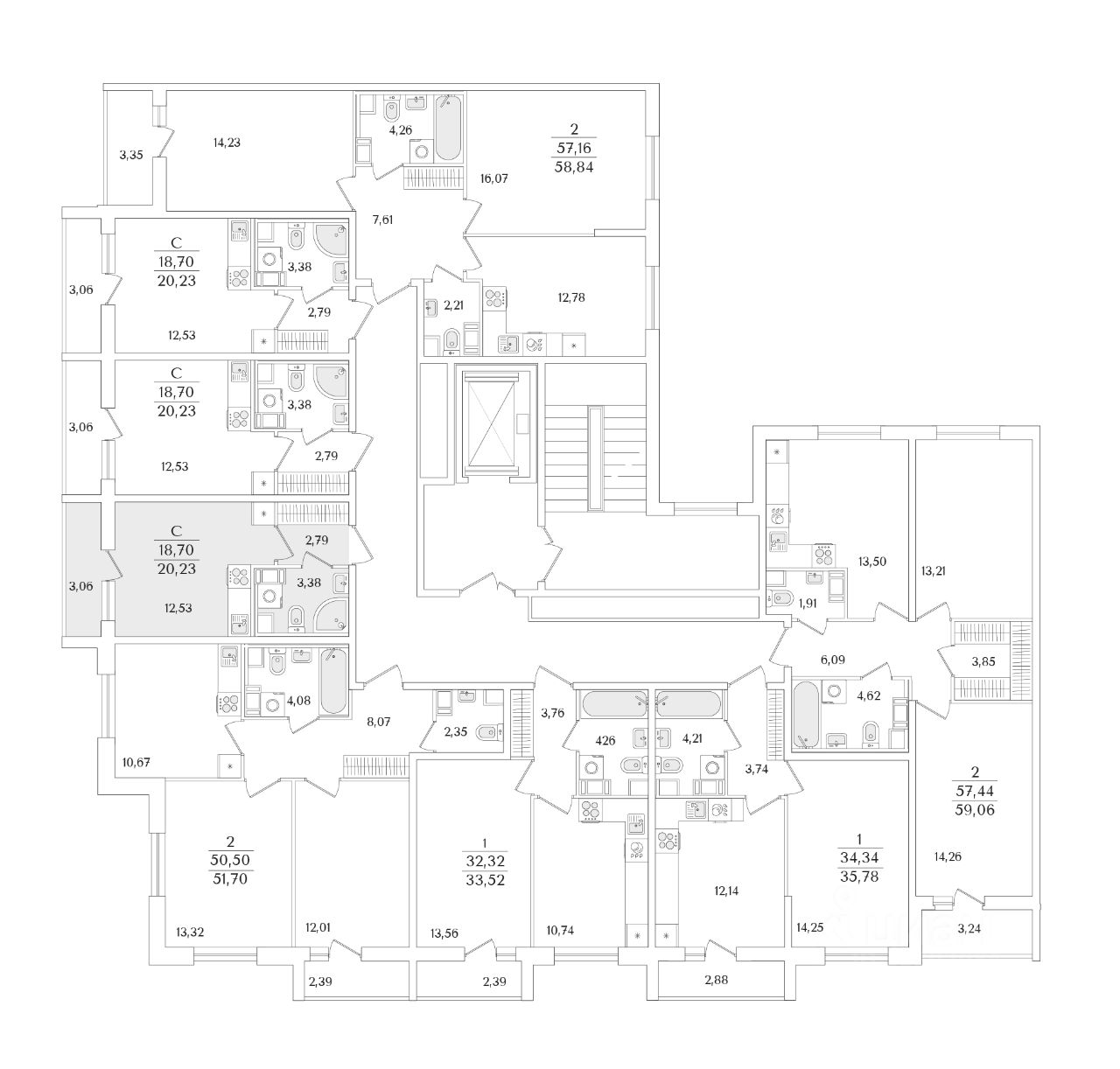 Квартира находится в 9 этажном доме, в Очередь 2, Корпус 2 на 6 этаже. Общая площадь квартиры 20,23 кв.м.
