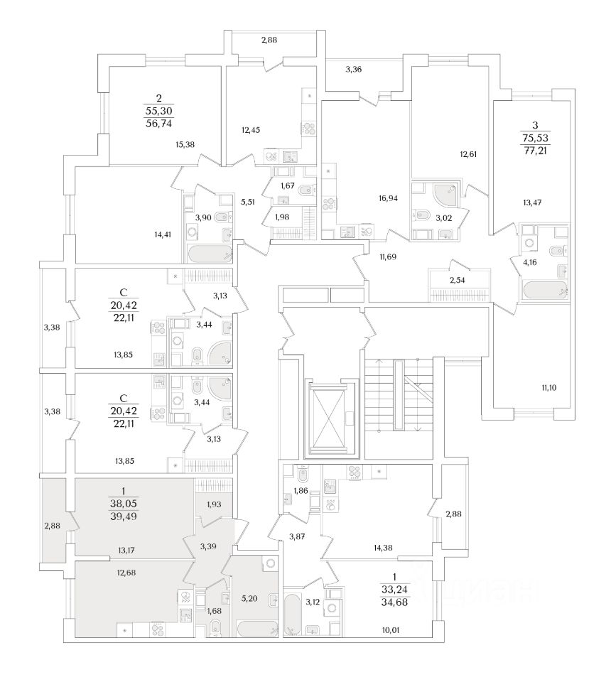 Квартира находится в 9 этажном доме, в Очередь 2, Корпус 2 на 6 этаже. Общая площадь квартиры 39,49 кв.м.